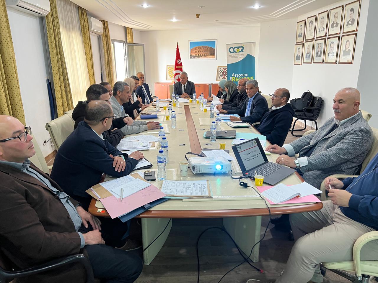حرصا على مزيد تسريع نسق تنفيذ عنصر الماء الصالح للشرب عن طريق الشركة الوطنية لاستغلال وتوزيع المياه، أشرف السيد مختار العرضاوي، المكلف بتسيير المندوبية العامة للتنمية الجهوية بالنيابة بمعية السيد حسان الكرو، المدير المركزي للبرامج الخصوصية، بتاريخ 14 أفريل 2026 على جلسة عمل في الغرض للنظر في الصعوبات المعترضة ضمن مشاريع الأقساط الثلاث لبرنامج التنمية المندمجة لا سيما العناصر التكميلية،.وإقتراح الحلول الملائمة لتجاوزها، وذلك بحضور ممثلين عن الإدارة العامة للموارد المائية بوزارة الفلاحة و الشركة الوطنية لاستغلال وتوزيع المياه مركزيا وجهويا بولايات سليانة والقيروان وسيدي بوزيد.وتطاوين وقفصة والمنسقين الجهويين وإطارات الإدارة المركزية للبرامج الخصوصية المعنية.